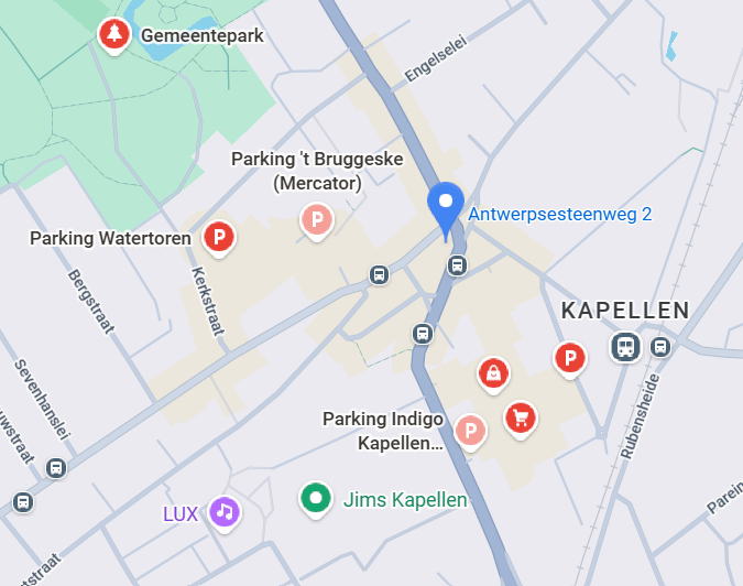 Zaal De Kroon ligt centraal in Kapellen en is vlot bereikbaar.